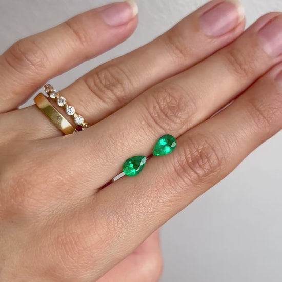 These elegant pear-cut emeralds display a vivid green colour with excellent transparency, making them an ideal choice for custom emerald earrings or bespoke jewellery designs.
